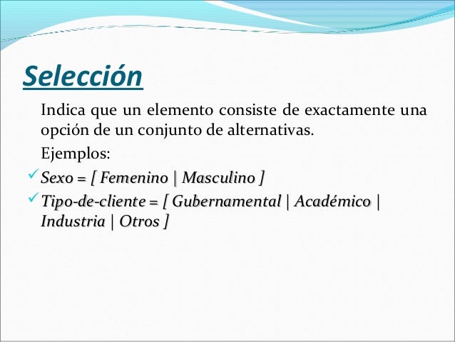- Un grupo de elementos, cada uno con un identificador único, un nombre y un tipo.